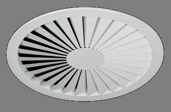 Diffusore circolare con alette a disposizione radiale circolare I diffusori rotazionali della serie RXO sono stati progettati per essere utilizzati negli impianti d'aria condizionata, di ventilazione e di riscaldamento. Si possono sia montare nei contro-soffitti sia direttamente appendere al soffitto. Il disegno delle alette e la loro disposizione radiale imprimono un moto rotazionale all'aria con effetto coanda, ottenendo in tal modo un'elevata induzione e riducendo altresì la stratificazione. Le alette settorizzate garantiscono un flusso d'aria uniforme in tutta la sezione di passaggio. I diffusori della serie RXO permettono una variazione della portata fino a 60% mantenendo stabile la vena d'aria. Tali diffusori possono essere installati da 2.6 a 4 metri d´altezza, con un differenziale di temperatura fino a 12Cº.